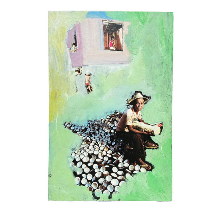 Mixed Media Paintings. Collaged Vintage National Geographics with oil paint overlay.